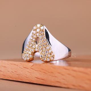 Round Cut Diamond Customized A Letter Moissanite Ring