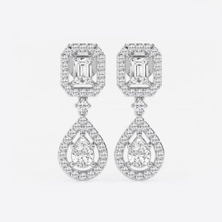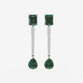 Alicia Silverstone Inspired Emerald & Pear Cut Diamond Dangle Drop Earrings