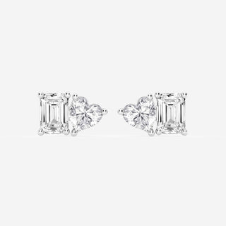 Taylor Swift Inspired Heart & Emerald Cut Toi Et Moi Moissanite Stud Earrings