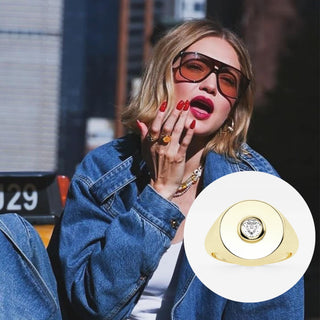 Heidi Gardner Inspired Round Cut Bezel Setting Solitaire Signet Ring