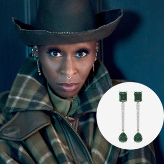 Cynthia Erivo Inspired Emerald & Pear Cut Green Gemstone Dangle Earrings