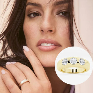 Ashley Graham Inspired Round Cut Three Stone Moissanite Engagement Ring