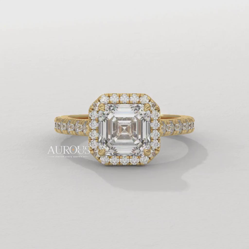 1.0CT Asscher Cut Diamond Halo Setting Moissanite Engagement Ring