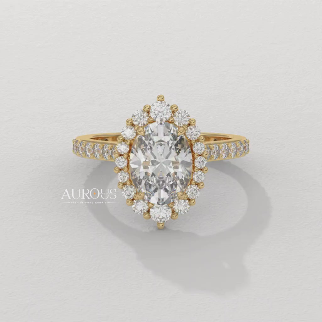 1.0CT Oval Cut Halo Cluster Diamond Moissanite Engagement Ring