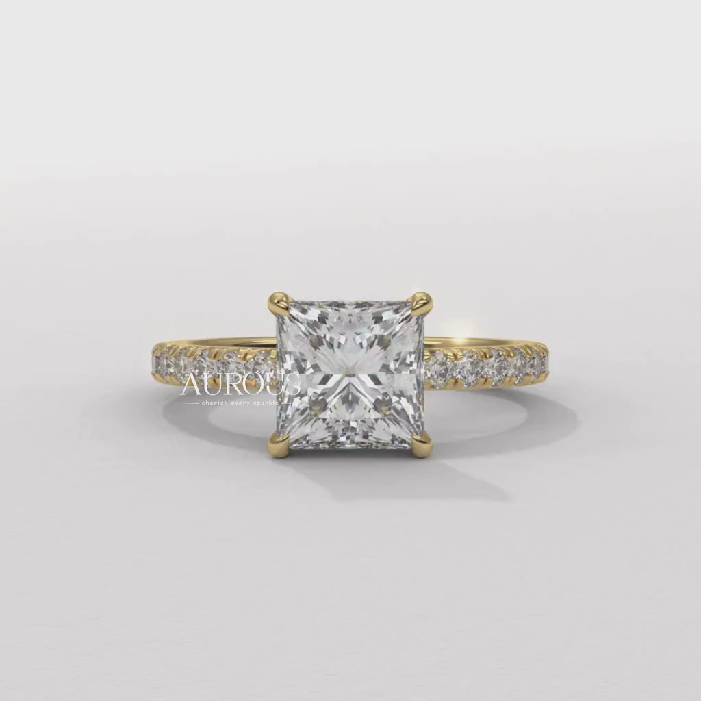 1.0CT Princess Cut Pave Setting Moissanite Engagement Ring
