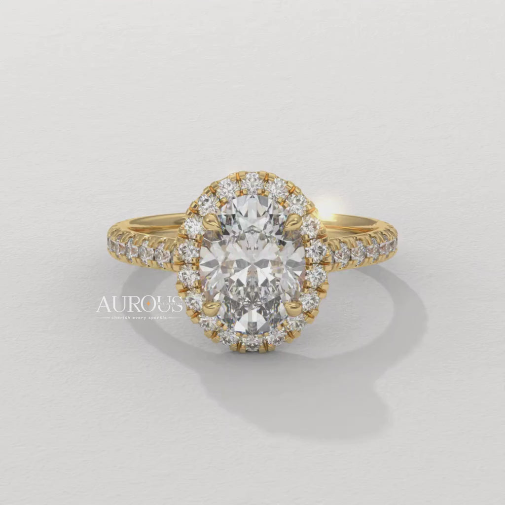 1.50CT Oval Cut Halo Pave Setting Moissanite Engagement Ring