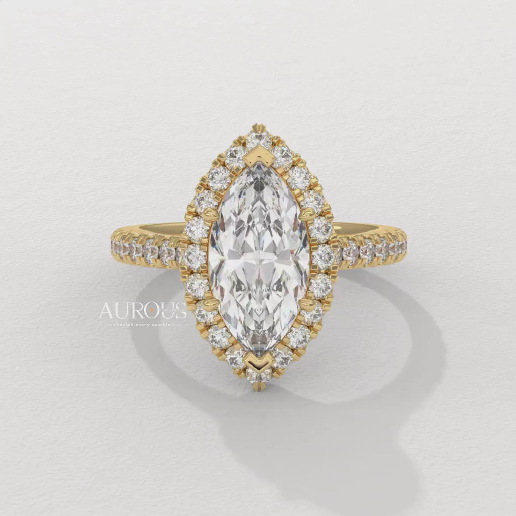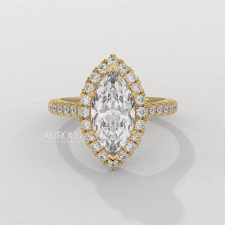 2.0CT Marquise Cut Halo Pave Setting Moissanite Engagement Ring