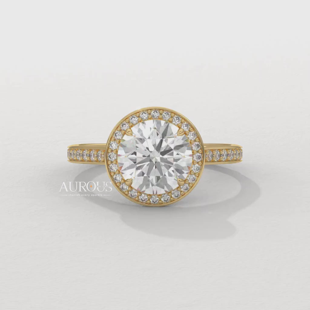 2.0CT Round Cut Halo Pave Setting Moissanite Diamond Engagement Ring