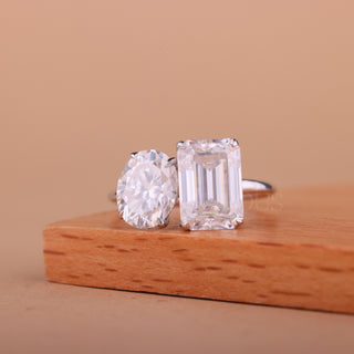 2.0CTW Oval & Emerald Cut Toi Et Moi Moissanite Engagement Ring