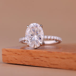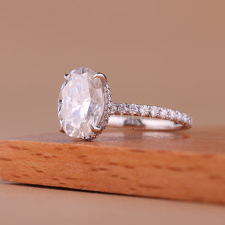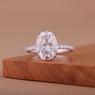 4.0CT Oval Cut Unique Hidden Halo Pave Set Moissanite Engagemen Ring