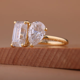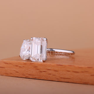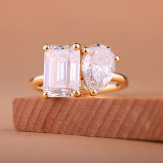 2.0CTW Pear & Emerald Cut Toi Et Moi Moissanite Engagement Ring