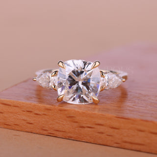 1.0CT Cushion Cut Three Stone Moissanite Engagement Ring