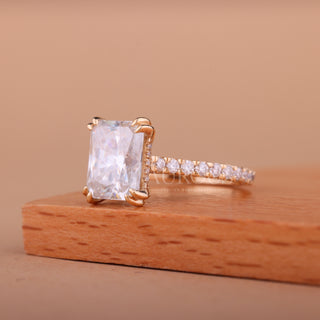 1.50CT Radiant Cut Hidden Halo Moissanite Engagement Ring