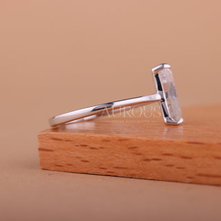 1.50CT Emerald Cut Bezel Set Unique Moissanite Engagement Ring