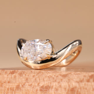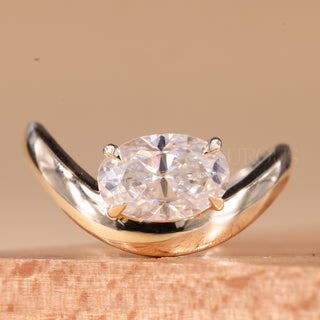 1.50CT East-West Oval Cut Solitaire Curved Moissanite Engagement Ring