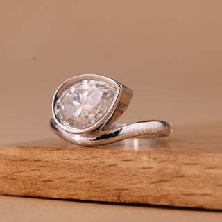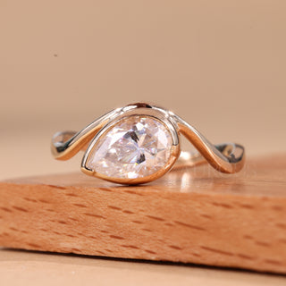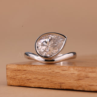 1.50CT East-West Pear Cut Curved Solitaire Moissanite Engagement Ring