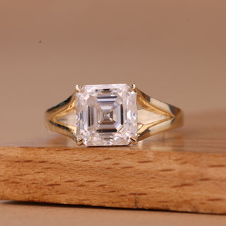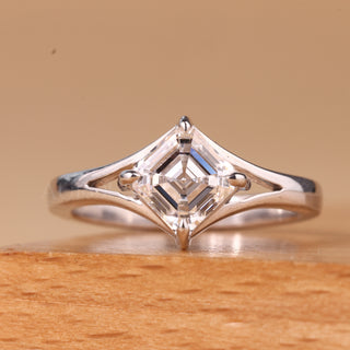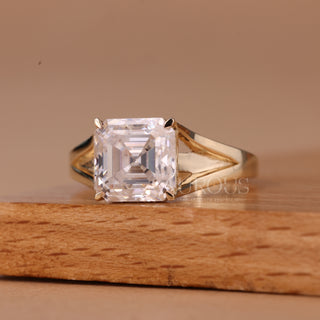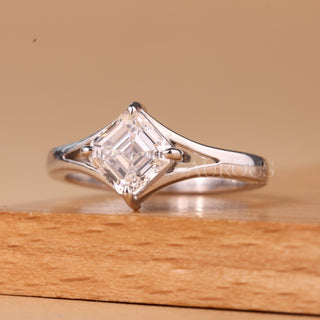 1.0CT Asscher Cut Solitaire Split Shank Moissanite Engagement Ring