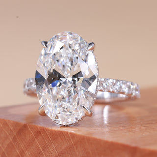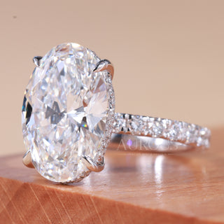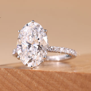 4.0CT Oval Cut Hidden Halo Pave Setting Moissanite Engagement Ring
