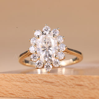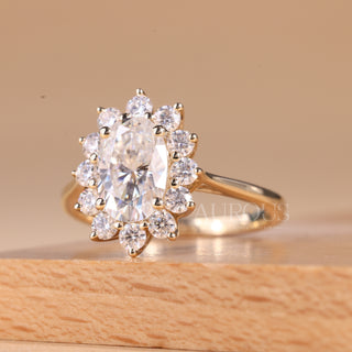 1.50CT Oval Cut Cluster Diamond Moissanite Engagement Ring