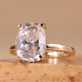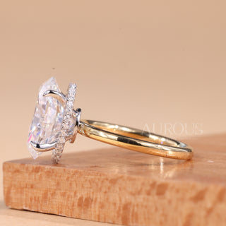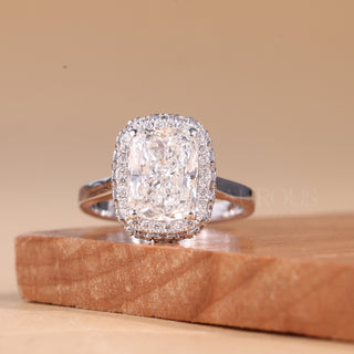 2.0CT Elongated Cushion Cut Hidden Halo Moissanite Engagement Ring