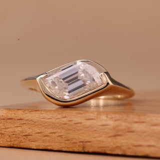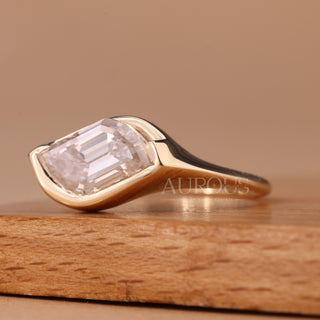 2.0CT East-West Emerald Cut Solitaire Diamond Moissanite Engagement Ring