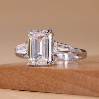2.0CT Emerald Cut Three Stone Moissanite Engagement Ring