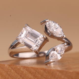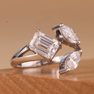 Emerald & Marquise Cut Three Stone Moissanite Engagement Ring