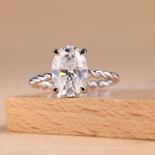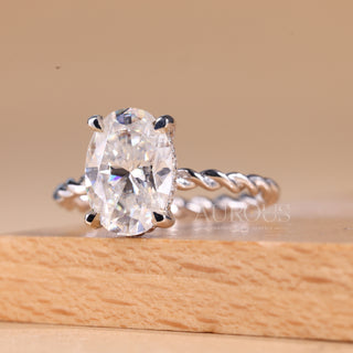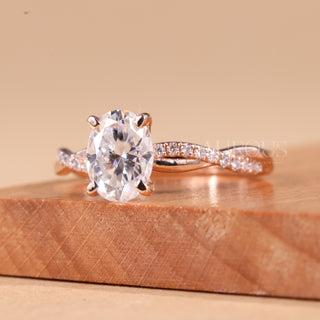 1.0CT Oval Cut Twisted Pave Setting Moissanite Engagement Ring