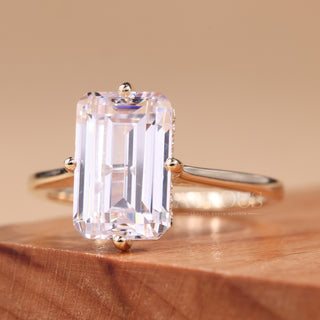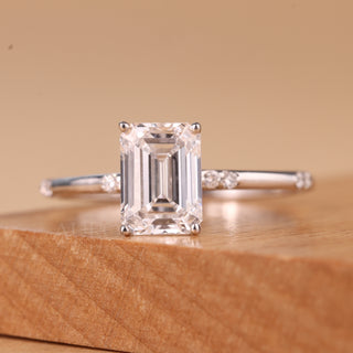 3.0CT Emerald Cut Moissanite Hidden Halo Engagement Ring
