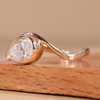 1.0CT East-West Pear Cut Bezel Set Curved Solitaire Engagement Ring