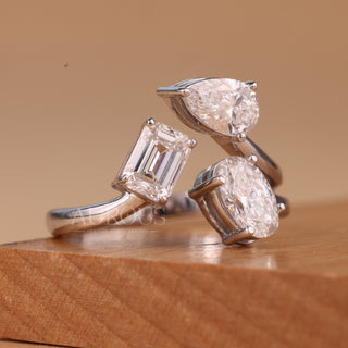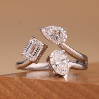 1.50CTW Emerald, Pear & Oval Cut Unique Three Stone Engagement Ring