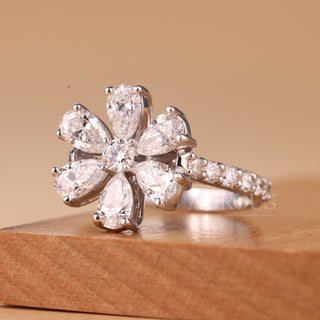 Round & Pear Diamond Flower Design Moissanite Engagement Ring