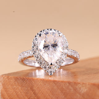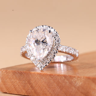 1.0CT Pear Cut Diamond Halo Setting Moissanite Engagement Ring