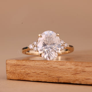 1.0CT Oval Cut Cluster Diamond Moissanite Engagement Ring