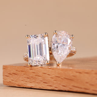 2.0CTW Emerald & Pear Cut Diamond Toi Et Moi Engagement Ring