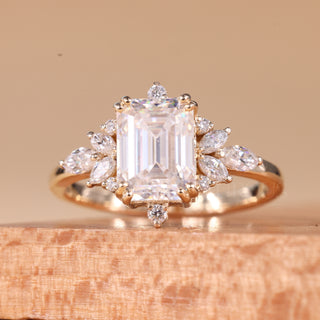1.50CT Emerald Cut Cluster Diamond Moissanite Engagement Ring