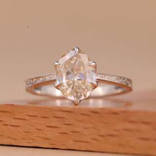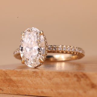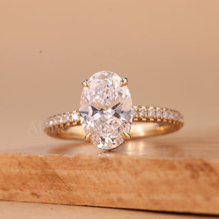 2.0CT Oval Cut Three Side Pave Setting Moissanite Engagement Ring