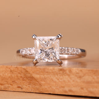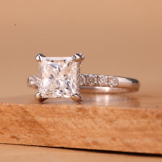1.0CT Princess Cut Diamond Pave Setting Moissanite Engagement Ring