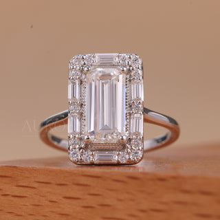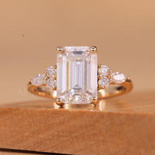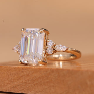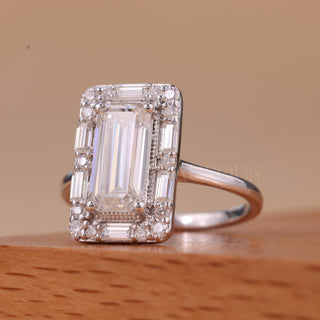 2.0CT Emerald Cut Cluster Diamond Moissanite Engagement Ring
