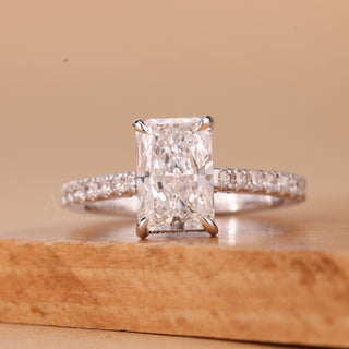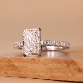 2.0CT Radiant Cut Pave Setting Hidden Halo Engagement Ring