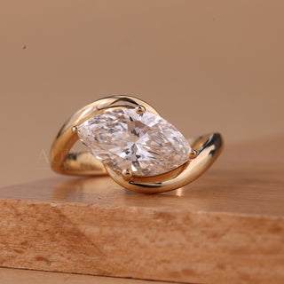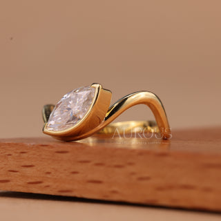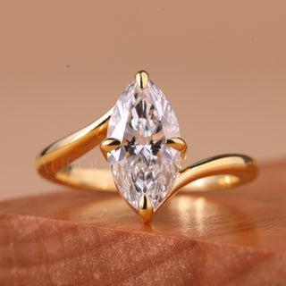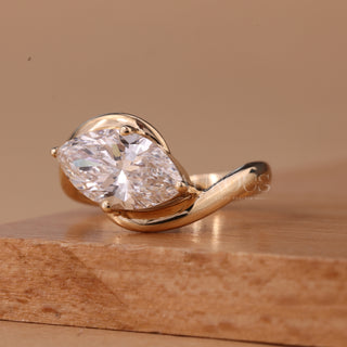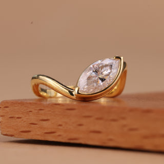 1.0CT Marquise Cut Solitaire Curved Moissanite Engagement Ring