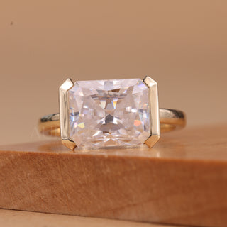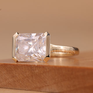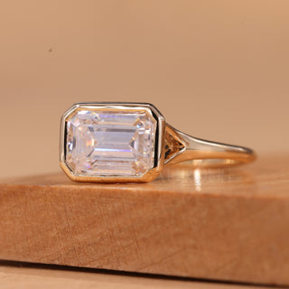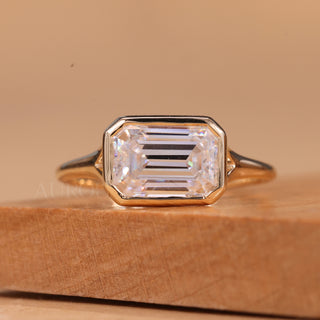 2.0CT East-West Emerald Cut Bezel Setting Moissanite Engagement Ring