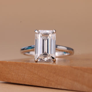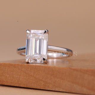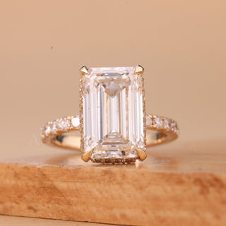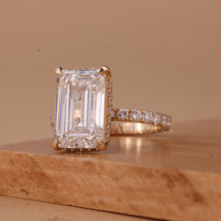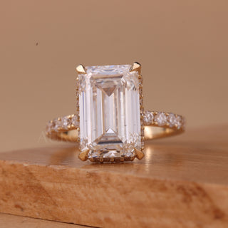 3.50CT Emerald Cut Hidden Halo Pave Setting Moissanite Engagement Ring