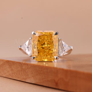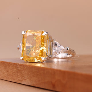 3.0CT Radiant Cut Yellow Diamond Three Stone Engagement Ring