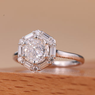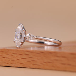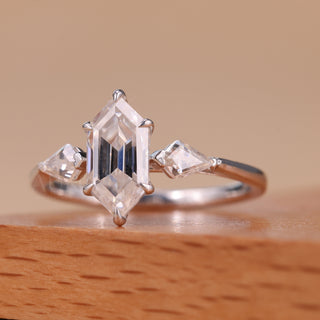 1.0CT Elongated Hexagon Cut Three Stone Moissanite Engagement Ring