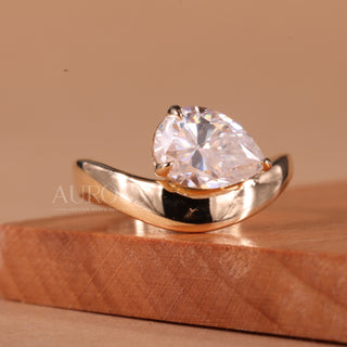 1.50CT East-West Pear Cut Curved Solitaire Engagement Ring