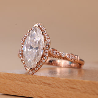 2.50CT Marquise Cut Vintage Inspired Halo Setting Engagement Ring