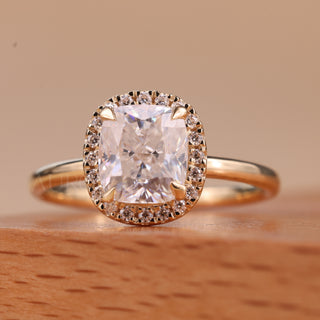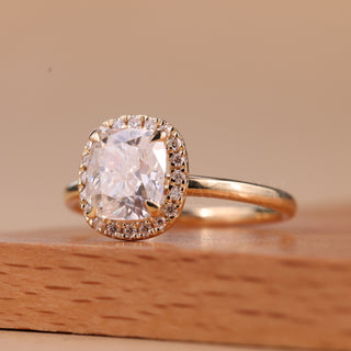 1.0CT Elongated Cushion Cut Halo Setting Moissanite Engagement Ring