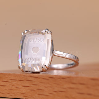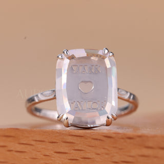 4.50CT Elongated Cushion Portrait Cut Unique Engraved Solitaire Ring