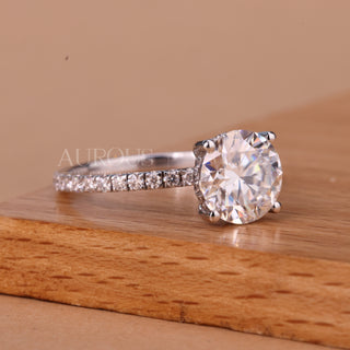 2.0CT Round Brilliant Cut Pave Setting Moissanite Engagement Ring